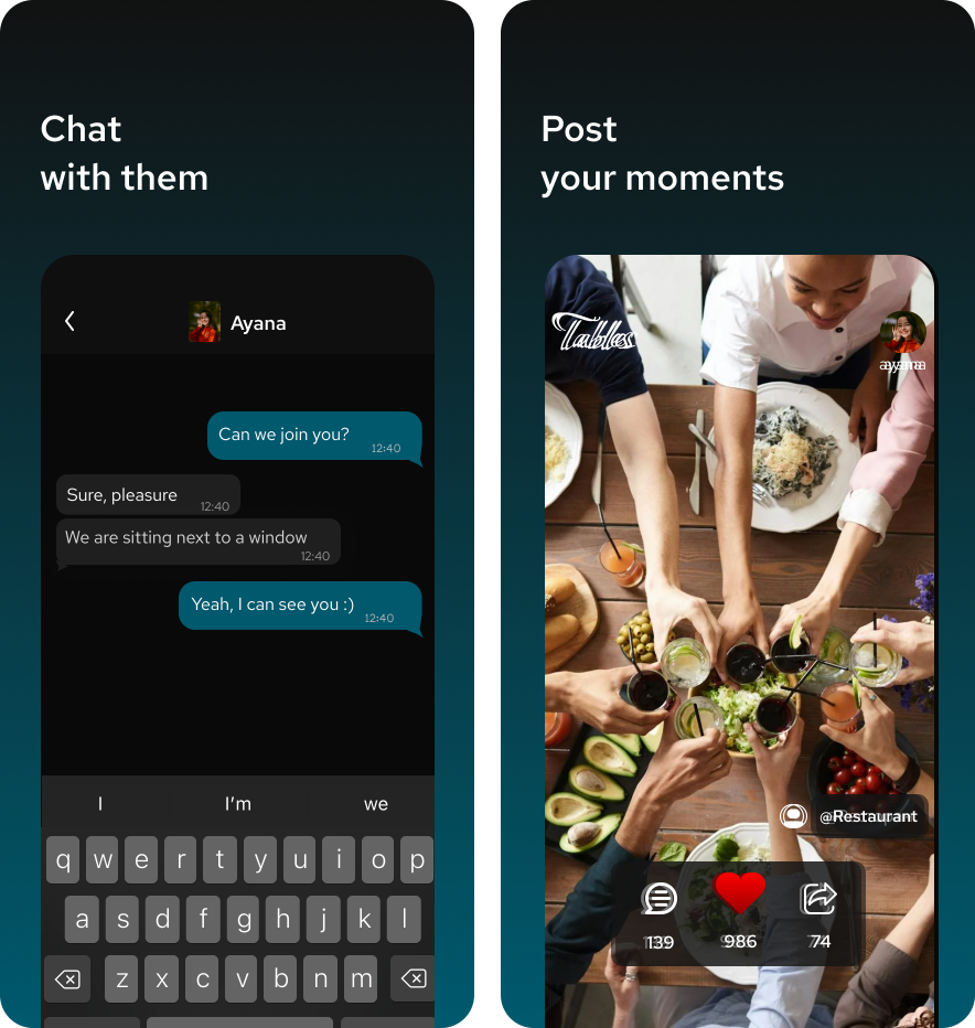 Are you in a restaurant, bar, or any other venue? Do you like a person sitting by the next table? Check-in through our app and simply send a message to that person. Yes, social networks have never felt this real!It’s more than just posting, commenting, or liking — it’s about making real connections and chatting with people you see in person.Share your memorable moments, build a unique profile, meet new friends, and bring your conversations to life! Tables is more than a social network; it’s a new reality where online interactions come alive!